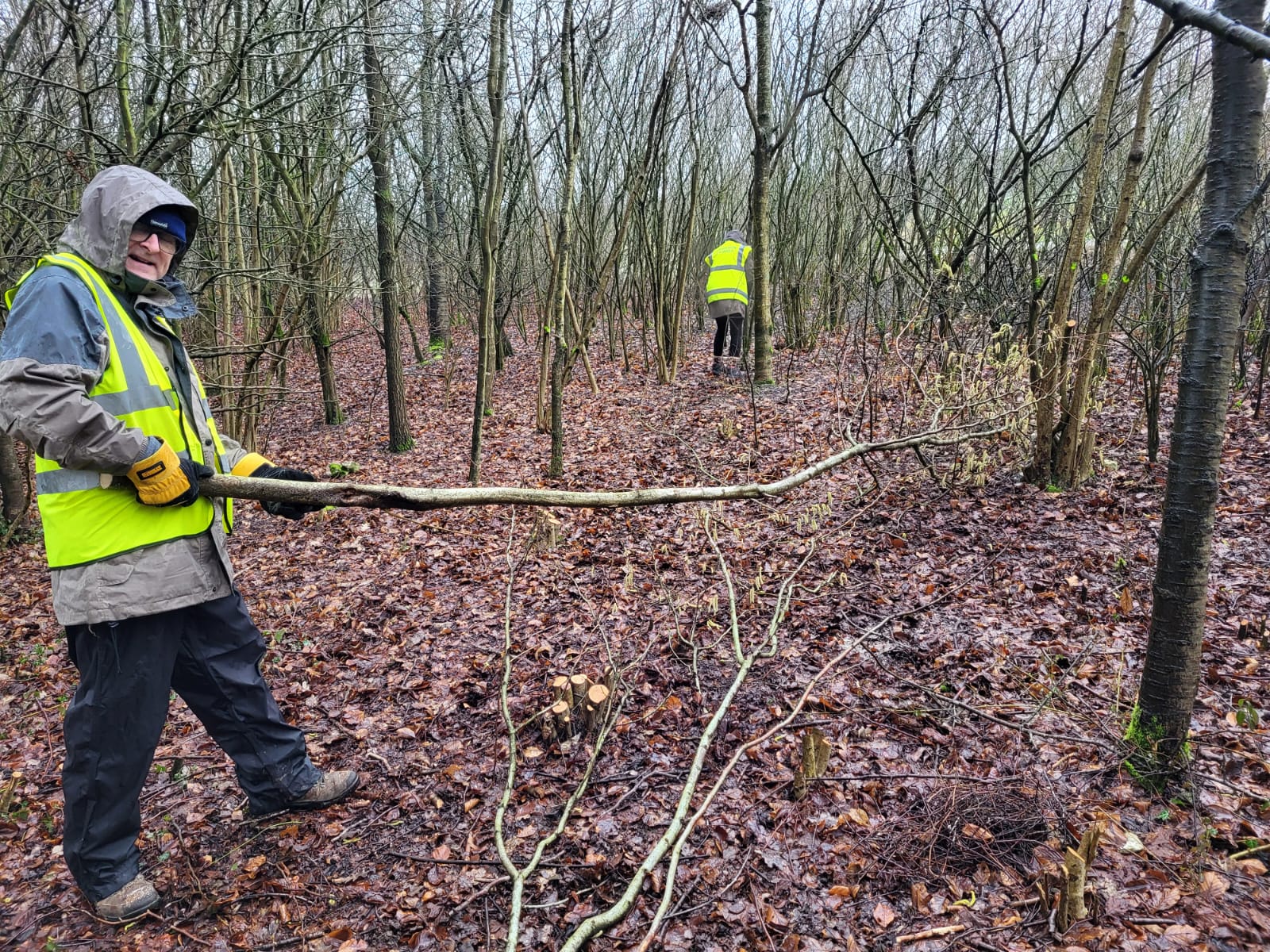 ‘Stetsons’ off to all for braving the conditions and with tools safely returned to store they rode off into the sunset (well they would have done had it stopped raining!) to the local saloon, The Holly Blue, for some well earned refreshment. There they were joined by ‘Marshall’ Steve for a pow wow regarding assistance in another area of town. The ‘Beggarwood Bunch’ chewed the fat and looked him straight in the eye and agreed to help on 24th Feb and 24th Mar.