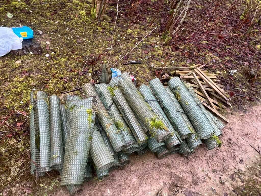The second ‘Posse’, lead by Sheriff Ildi and ably assisted by outriders Linda & Jenny set out to the triangle wooded area between the three outdoor exercise equipment areas to round up and remove those pesky tree guards. Again after valiant efforts in dense scrub they succeeded in quite a haul.